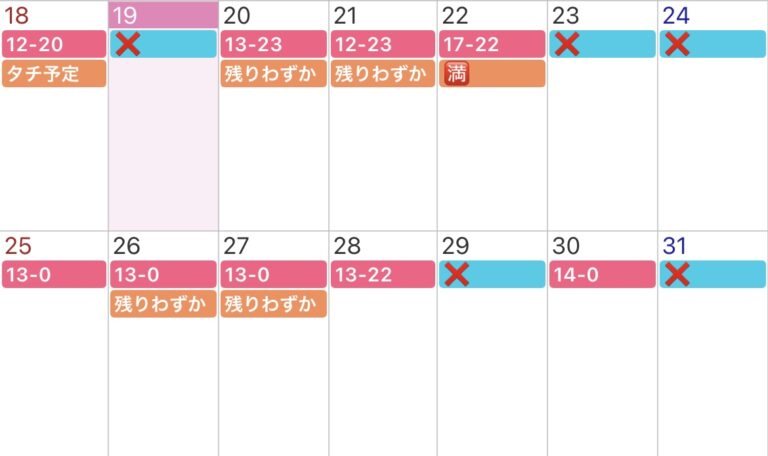 1月後半の出勤&ご予約情報はこのような感じです😌
